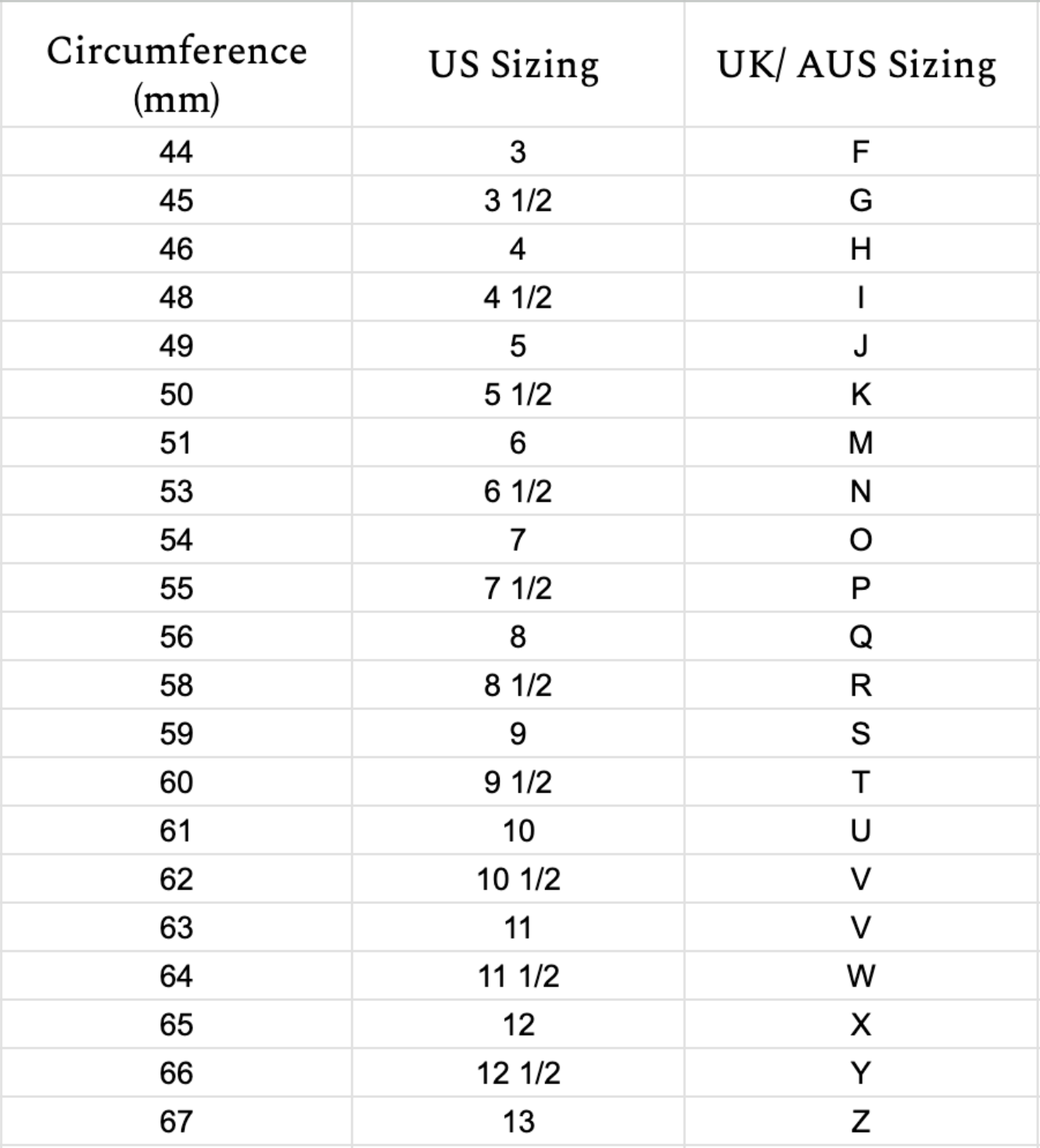 If you are in between sizes. E.g: you’re in-between O and P. Please select the half size O-1/2 to ensure the best fit for you. Check out our sizing chart of the exact measurements.