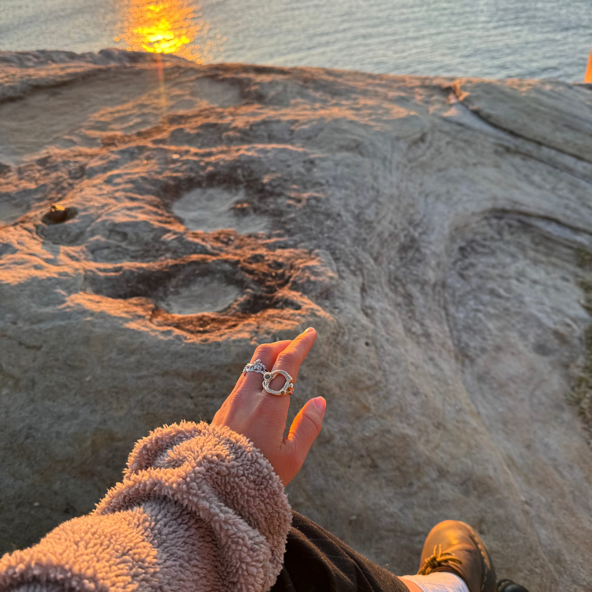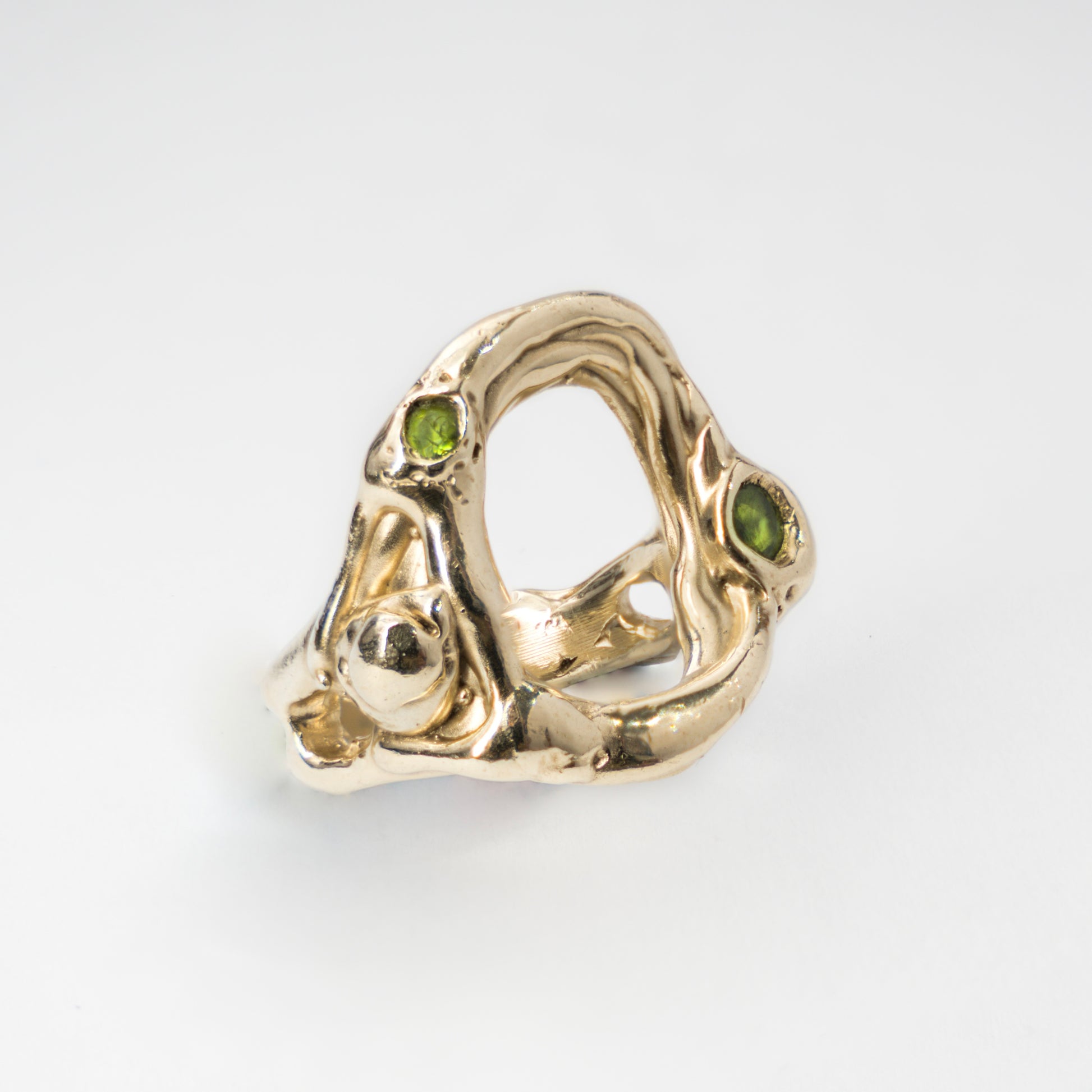 9ct Gold, molten textured ring, based off the O.G Silver butter ring 'Molten' with lab-grown pink and blue sapphire set in place.