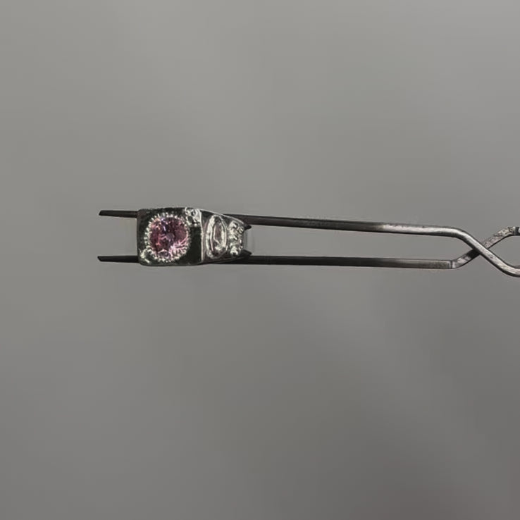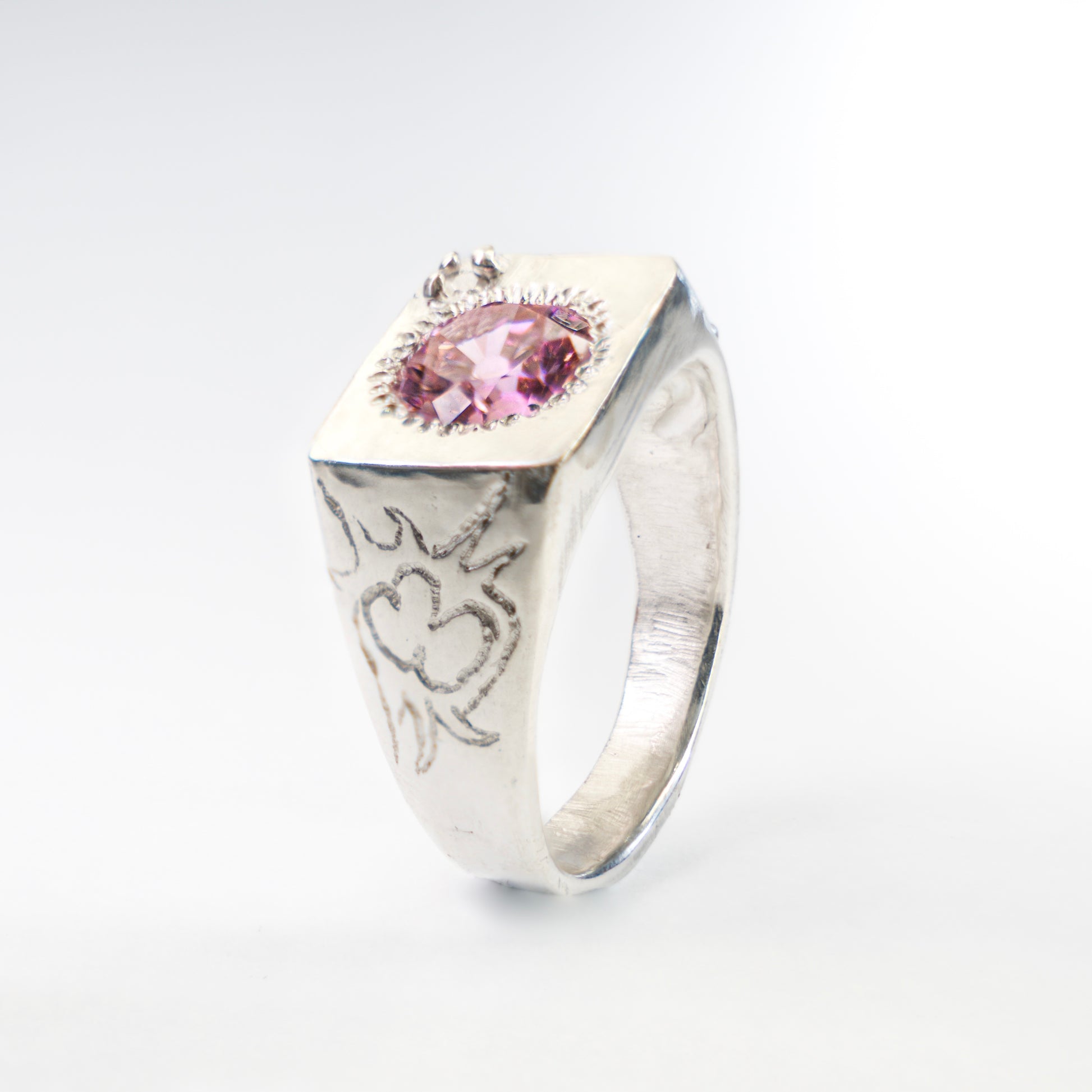 925 sterling silver, engraved tattoo design with star set, lab-grown pink sapphire.