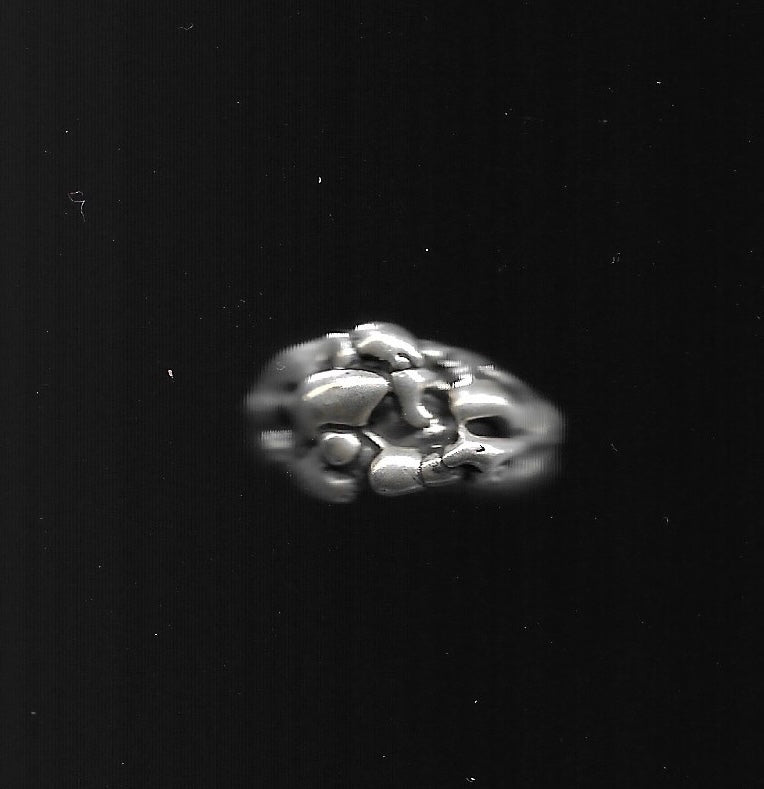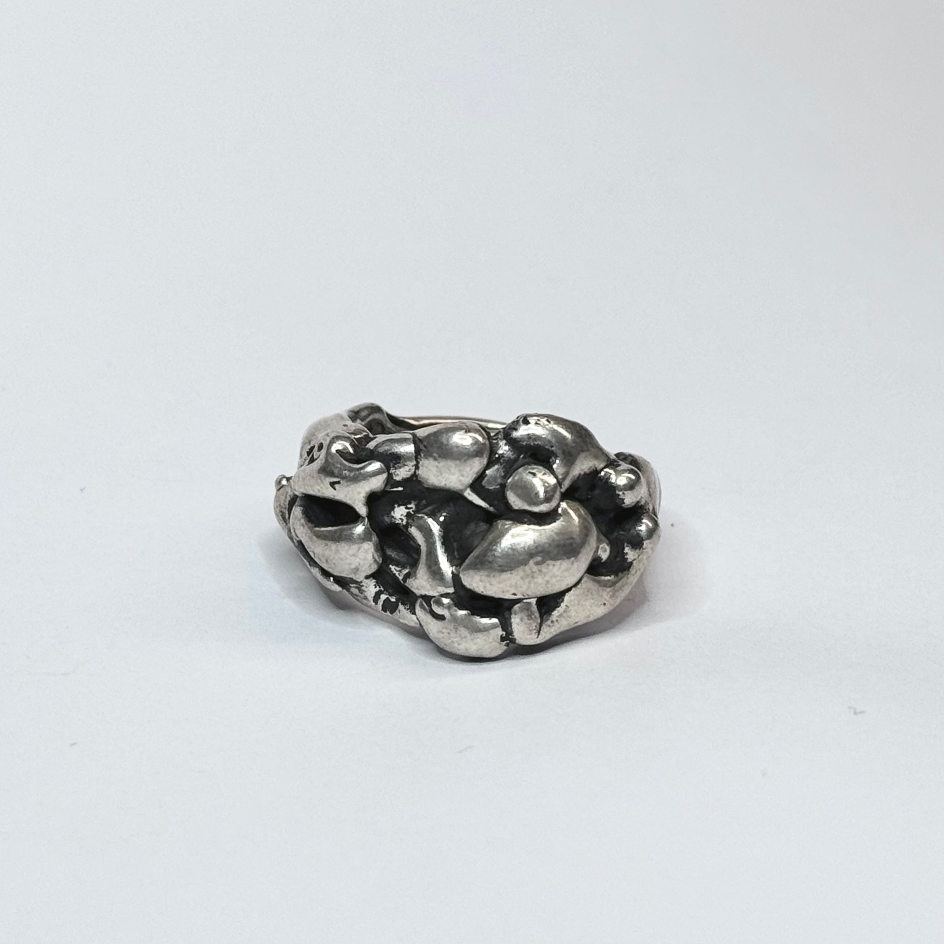 Heavy textured 925 sterling silver band with oxide finish.